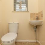 CLOAKROOM wc; corner wash hand basin with mixer tap; frosted double glazed window; radiator; tiled flooring.