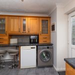 KITCHEN 11' 9" x 10' 2" (3.58m x 3.1m) u-shaped worktop; range of base cupboards and drawers under; space for freestanding oven; space for upright fridge freezer; one bowl sink with mixer tap; further worktop/breakfast bar with space and plumbing for washing machine and dishwasher; range of wall units; including storage drawers; frosted glazed unit and cupboards; light and extractor; tiled flooring; radiator; window to rear aspect; upvc door out to the rear garden.