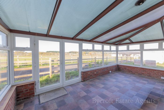 CONSERVATORY 19' 10" x 9' 7" (6.05m x 2.92m) brick base with windows to front, side and rear aspect enjoying fantastic field views; rear door; radiator; wall lights; French doors to side.
