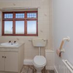 BATHROOM comprising bath with mixer tap; vanity unit with hand wash basin; WC; storage cupboards; frosted double-glazed window; radiator.
