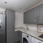 KITCHEN 9' 11" x 9' 6" (3.02m x 2.9m) fitted with a range of wall and base units with square edge work surfaces over and upstand; inset 1½ bowl single drainer sink with directional mixer tap over; built-in electric oven; built-in 4 ring gas with cooker hood over; wall mounted gas-fired central heating boiler; UPVC double-glazed window to rear; integrated dishwasher and fridge; tiled flooring.