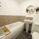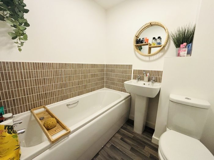 BATHROOM bath; wash basin; wc; tiled splashbacks.