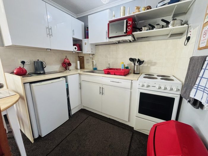 LIVING AREA/KITCHEN AREA 15' 5" x 9' 7" (4.7m x 2.92m) upvc entrance door; large upvc window; kitchen area with wall cupboards; sink unit; freestanding cooker.
