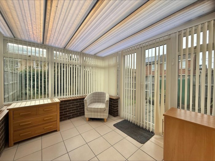 CONSERVATORY 9' x 7' 8" (2.74m x 2.34m) brick and UPVC construction with polycarbonate roof; UPVC double-glazed windows to the rear and side aspects; UPVC French doors to side; tiled flooring.