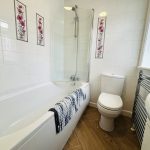 FAMILY BATHROOM shower over the bath; toilet and wash basin UPVC window and towel radiator.