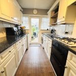 KITCHEN 12' x 7' (3.66m x 2.13m) UPVC single door to the rear with UPVC windows either side; space for a fridge freezer, washing machine and dishwasher; gas hob; electric double oven.