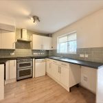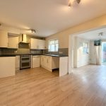 KITCHEN 17' x 9 max' (5.18m x 2.74m) fitted with a range of wall and base units with roll edge work surfaces over; inset stainless steel 1½ bowl sink with mixer tap over; plumbing for automatic washing machine; space for electric cooker point, electric oven with cooker hood over and fridge freezer; tiled splashbacks; window to rear; floor mounted oil-fired central heating boiler.