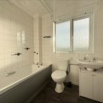 BATHROOM 6' 11 max" x 6' 1 max" (2.11m x 1.85m) fitted with a white suite comprising of a low level WC; pedestal wash hand basin; panel bath with wall mounted electric shower unit over; fully tiled walls; wall mounted electric heater; UPVC double-glazed window to rear.
