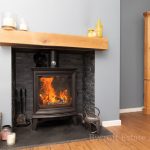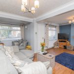 SITTING ROOM 19' 7 max" x 17' 1 max" (5.97m x 5.21m) 2 UPVC double-glazed windows to front; stairs to first floor landing; feature fireplace with slate hearth, inset wood burning stove and decorative oak mantle.