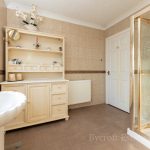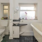 BATHROOM white suite comprising slipper design claw and ball feet bath with shower mixer tap over; close coupled WC; hand wash basin; ceramic tiled walls; extractor fan; double glazed window (one UPVC and one secondary double glazed).