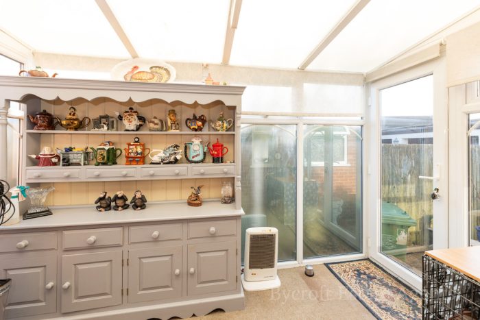REAR ENTRANCE THROUGH SMALL CONSERVATORY 11' 3" x 6' 9 plus door recess" (3.43m x 2.06m) UPVC double-glazed construction with double-glazed entrance door; hardwood framed glazed internal door to: