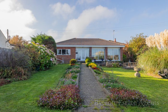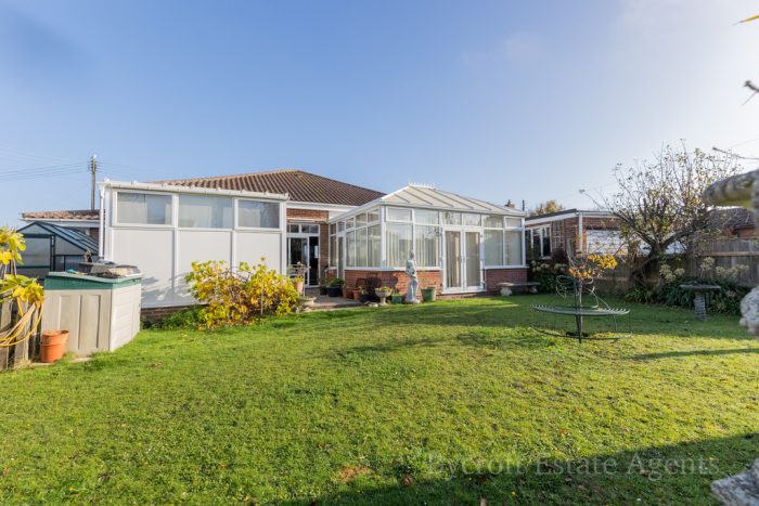 GUIDE PRICE £525,000-£550,000 Bycroft Estate Agents are delighted to offer this exceptional detached bungalow residence in a prime sea front location with a solar heated low maintenance indoor swimming pool. Front entrance to The Esplanade and access to front sun lounge with views of the sea, lounge/dining room, heated indoor swimming pool complex with changing room, shower room, garden room, conservatory, small conservatory, reception hall, kitchen/breakfast room, bathroom, 3 bedrooms, shower room, rear entrance from California Avenue to double garage through electric gates with video entry system, generous off road parking, house alarm, established gardens to front with sea views and private garden, oil fired central heating, UPVC double-glazed windows, soffits, fascias and bargeboards. Viewing of this highly individual property is strongly recommended.
