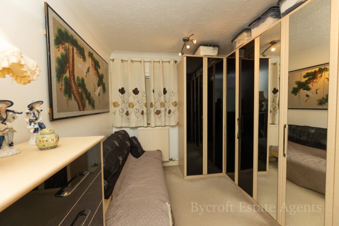 BEDROOM 3 11' 11" x 8' 10" (3.63m x 2.69m) (currently used as a dressing room); radiator; telephone point; television point; window overlooking the dining area and swimming pool.