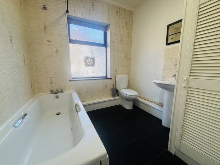 BATHROOM panelled bath; wc; pedestal wash basin; window to rear.