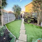 OUTSIDE To the rear is a garden with dining space, artificial grassed area with seating area and shed. Rear gate with access to the alleyway.