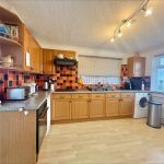 KITCHEN 12' 1" x 9' 6" (3.68m x 2.9m) fitted with a range of wall and base units with roll edge work surfaces over; built-in electric oven; space for fridge freezer; inset electric hob with cooker hood over; inset stainless steel single drainer sink with mixer tap over; plumbing for automatic washing machine; tiled splashback; UPVC double-glazed window to front and side.