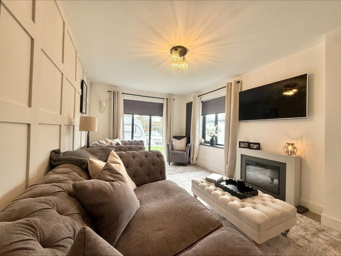 OUTSIDE To the front of the property is a garden area split over two levels with a substantial driveway area laid mainly to shingle for low maintenance providing ample off road parking for the property and also giving access to the double garage, a higher paved area with artificial grass provides an impressive approach to the property whilst providing an additional seating space. To the rear of the property is an enclosed garden laid mainly to pave with artificial turf split over two levels with a raised deck seating area incorporating the former railway platform. A Garden Room with views over adjacent farmland to the rear and side garden area providing an ideal space for relaxing or entertaining.