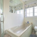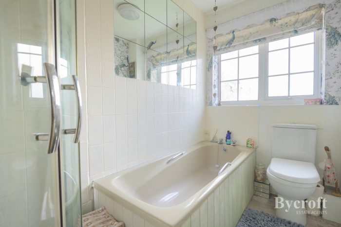 BATHROOM bath; wc; wash hand basin; corner shower cubicle with electric fittings; frosted double glazed window; radiator.