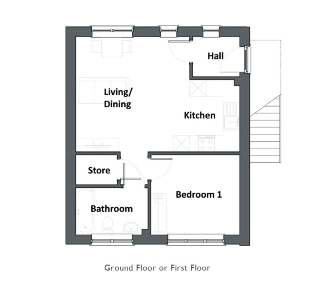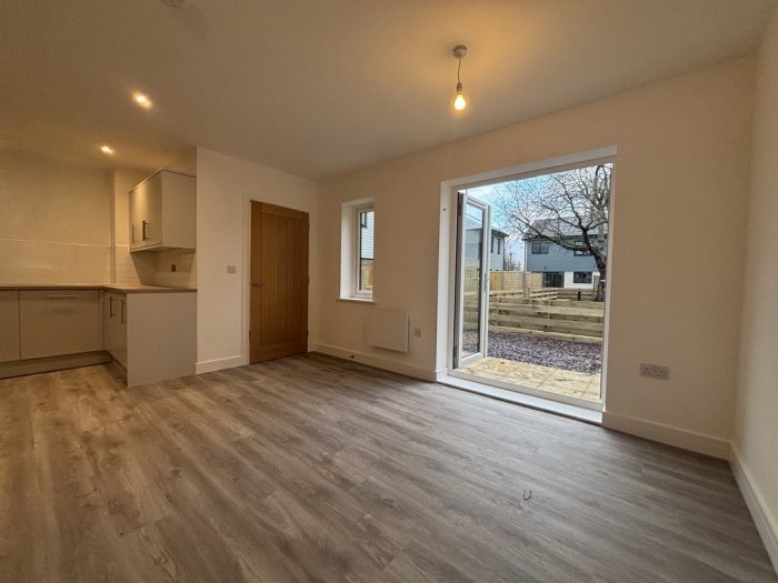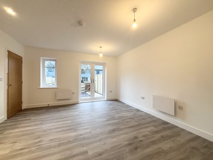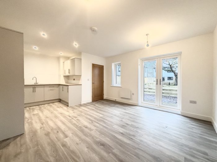 *GROUND FLOOR APARTMENT* A brand new build complete 1 bedroom ground floor apartment. Fully ready to be moved into, including flooring throughout, integrated fridge freezer, dishwasher & washer dryer. Also, with its own enclosed rear garden and allocated parking space. This modern apartment offers a hall entrance, open plan spacious living area with double doors out to the rear garden and modern kitchen with integrated appliances, a spacious double bedroom and bathroom with shower over the bath, wc and wash basin vanity unit.
