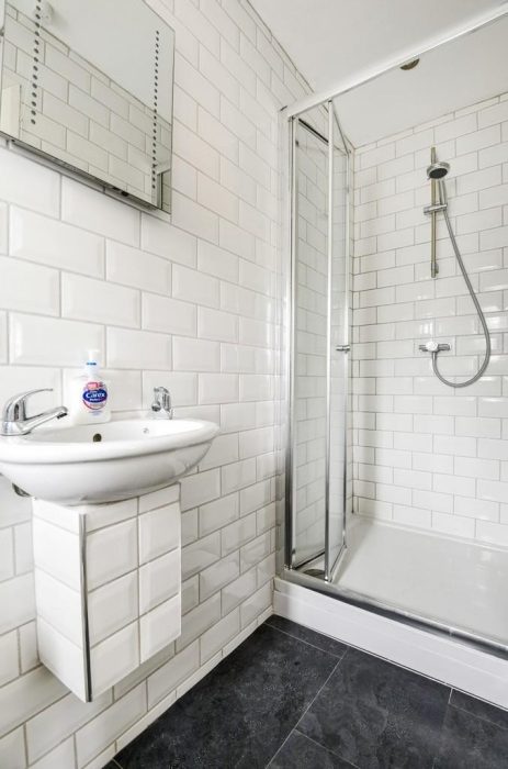 EN SUITE SHOWER ROOM fitted with a quality white suite comprising a large shower cubicle; wall mounted shower; glazed shower screen; tiled flooring; hand wash basin; low level wc; heated LED mirror; towel rail; extractor fan; UPVC double-glazed window to side.