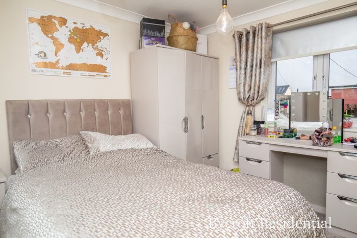 Bedroom 2 - 7'4" x 6'9" with fitted wall units; UPVC double-glazed window to side.