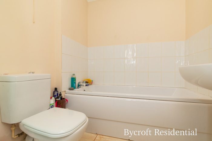 BATHROOM 7' 7" x 5' 11" (2.31m x 1.8m) fitted with a white suite comprising of a low level wc, panel bath, pedestal hand wash basin with mixer tap over and corner quadrant shower cubicle, wall mounted shower unit, sliding shower screen doors; wall mounted electric heater; Velux roof light window.