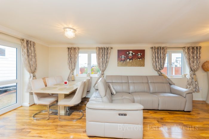 Lounge and Dining Area - 15'2" max x 12'8" max with UPVC double-glazed window to front and both side aspect.