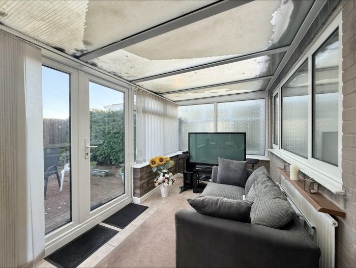CONSERVATORY 16' 4" x 7' 4" (4.98m x 2.24m) brick and UPVC construction; UPVC double-glazed windows to rear and side aspects; UPVC double-glazed French door to rear; tiled flooring; polycarbonate.