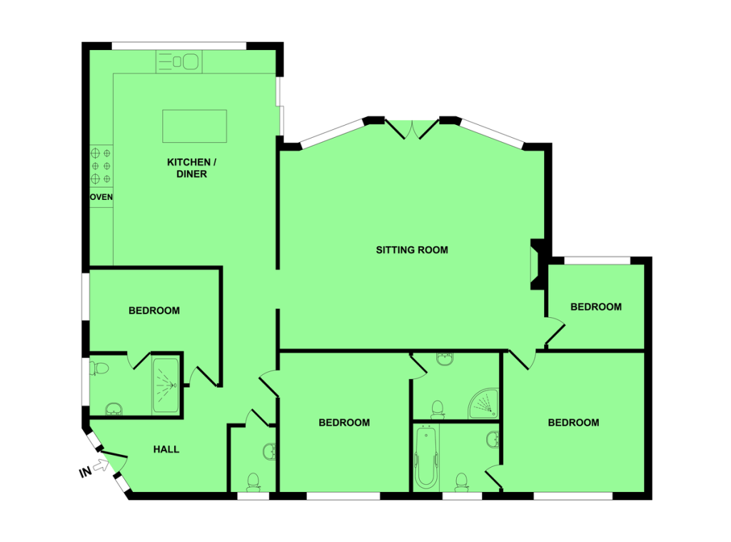 The approximate room sizes are only intended as general guidance. You must verify the dimensions carefully before ordering carpets or any built-in furniture.