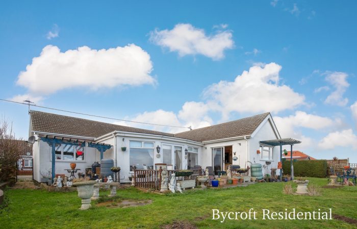 *GUIDE PRICE £325,000 - £350,000* Bycroft Estate Agents are delighted to present this amazing bungalow with unrivalled sea views within the popular coastal village of Hemsby. The property offers four bedrooms, three of them double and benefitting from an en-suite, a large kitchen diner with doors leading to the outside patio space and a spacious lounge with panoramic sea views. The garden wraps round and has private access down to the Dune Valley, a brick weave driveway for 2/3 cars and garage to the front. An internal inspection is highly recommended to fully appreciate the style and quality of accommodation on offer.