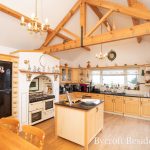 KITCHEN/DINER 18' x 14' 10" upvc double glazed windows to rear aspect with stunning sea view; upvc sliding doors to side aspect; extensive range of wall and base units; sink drainer; Range cooker which is run off Propane gas; additional cupboard housing the oil central heating boiler; island unit. Vaulted ceiling with beams.