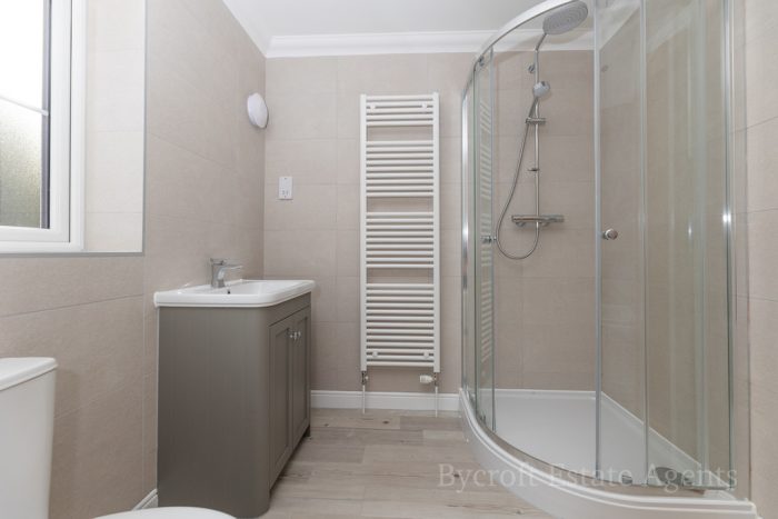 ENSUITE / SHOWER ROOM shower cubicle; wc; wash hand basin; heated towel rail.