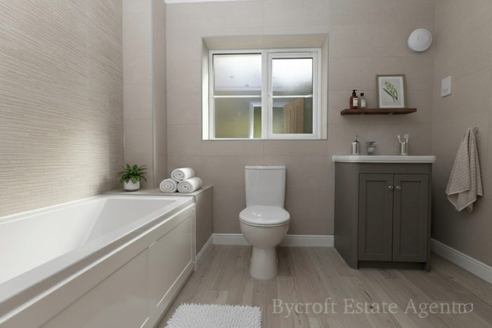 BATHROOM bath; wc; wash hand basin; shower cubicle; rear window; heated towel rail.