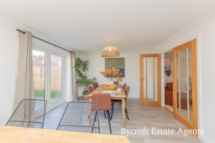 PLOT 54 'THORPE' 1412 SQ FT** Bycroft Residential are delighted to offer this spacious BRAND NEW DETACHED 4 BEDROOM Executive family home built by the reputable BADGER BUILDING. The property boasts a modern OPEN PLAN KITCHEN/DINING AREA with French doors leading out to SOUTH/WEST FACING rear garden. The property benefits from underfloor heating throughout the ground floor, fitted security alarm and Openreach fibre.