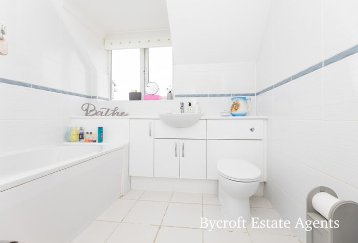 BATHROOM bath with mixer tap and wall mounted shower unit over; wc; hand wash basin; heated towel rail; window to front aspect.