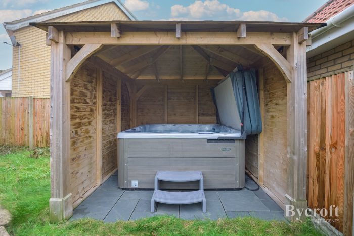 OUTSIDE To the front of the property is a full width brick weave driveway, space for four cars standing and outside lighting. Side gates either side with pathway around to the enclosed rear garden with lawn area; paved pathway and patios; pagoda with hot tub (by separate negotiation) ; outside lighting and tap.