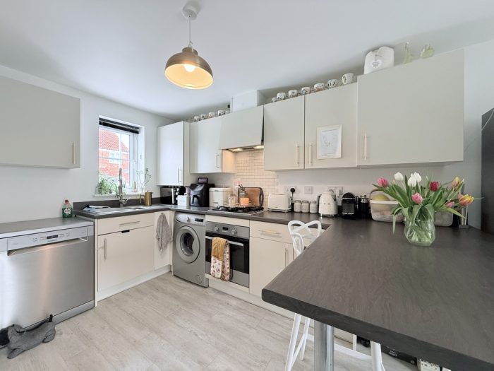 KITCHEN LOUNGE DINER 22' 3" x 12' 3 max" (6.78m x 3.73m) Kitchen area with U-shaped worktop/breakfast bar ; space and plumbing for washing machine, dishwasher; built-in oven; four ring gas hob; stainless steel one and a half bowl sink with mixer tap; range of wall units including cupboard housing Ideal Logic gas boiler; space for upright fridge freezer; two radiators; French doors to rear garden.