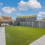 OUTSIDE To the front of the property is a driveway with parking for two cars. To the rear of the property is a porcelain tiled area with a pathway going to a seated area at the back, artificial lawn, with a shed.