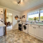 KITCHEN 11' 9" x 9' 0" (3.58m x 2.74m) worktops with a range of base cupboards, drawers and wall units; space and plumbing for washing machine; space for oven and upright fridge freezer; one and a half bowl sink with mixer tap; breakfast bar; window to rear aspect; radiator; side door; understairs storage cupboard.