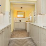KITCHEN 20' 8" x 7' 3" (6.3m x 2.21m) split over two levels; range of wall and base units with square edge work surfaces over; inset 4 ring electric hob; built-in electric oven; floor mounted oil-fired central heating boiler; two integrated fridges; integrated dishwasher and washing machine; inset 1½ bowl sink with mixer tap over.