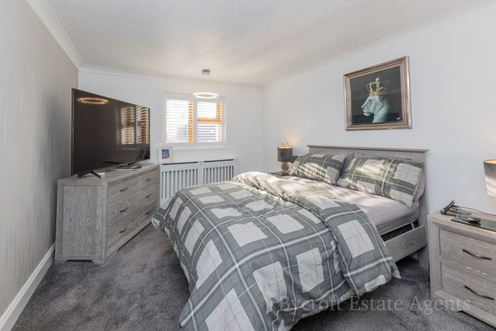 BEDROOM 1 14' 5" x 13' 6" (4.39m x 4.11m) UPVC double-glazed window to front; UPVC double-glazed window to side. Door to: