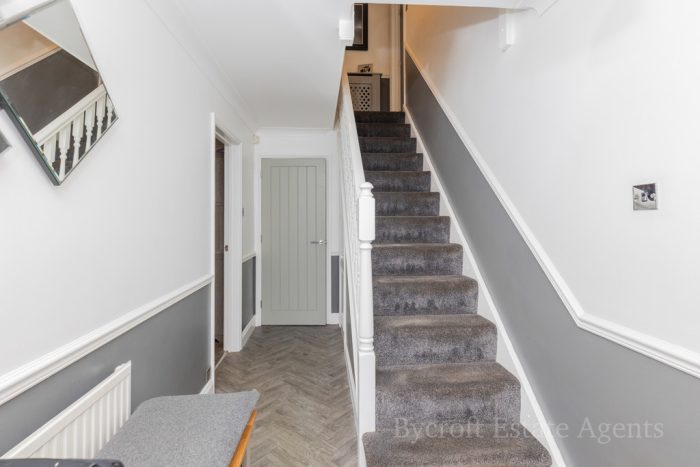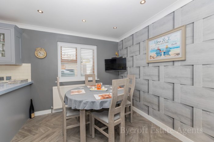 OUTSIDE To the front of the property is a garden area laid mainly to block pave to provide ample off-road parking and gives access to the single garage, side access gate, raised low maintenance borders with mature hedging, established shrub borders and covered storm porch with seating area. To the side of the property a further enclosed garden is laid mainly to artificial turf and raised deck seating area for low maintenance and providing an ideal space for relaxing and entertaining, with shingle and slate borders and established trees and shrubs. Block pave pathway area continues around the rear of the building leading to a further courtyard garden area with outside tap . Personal door leading to: