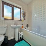 BATHROOM bath with mixer tap and wall mounted shower unit; wc; hand wash basin; UPVC double glazed window to front aspect; heated towel rail radiator.