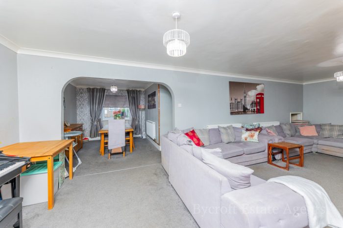 SITTING ROOM 28' 2" x 12' 1" (8.59m x 3.68m) UPVC double-glazed French door to rear; UPVC double-glazed window to rear; under stairs storage area.