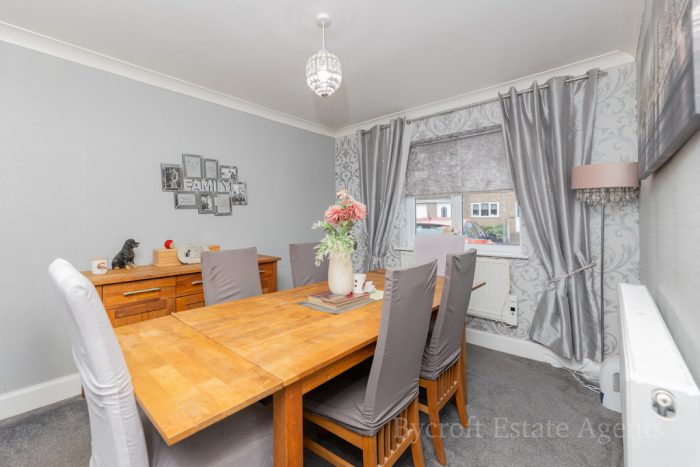 DINING ROOM 12' 4 max into door recess" x 11' 8 max" (3.76m x 3.56m) UPVC double-glazed window to front.