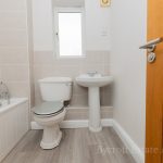 FAMILY BATHROOM bath mixer with tap and shower attachment; wc; pedestal wash hand basin with mixer tap; frosted double glazed window; shaver point; radiator; extractor fan.