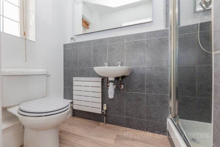 ENSUITE SHOWER ROOM wc; wash hand basin; shower cubicle with Mira mains fittings; radiator; frosted double glazed window; down lights.