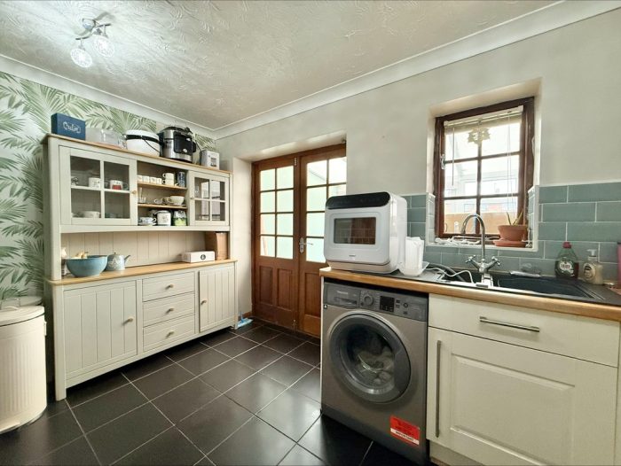 OUTSIDE To the front the property is a garden area laid mainly to lawn, paved pathway approach to the front door with a covered storm porch. To the rear of the property is an enclosed garden laid mainly to lawn with 2 paved patio seating areas giving a choice of outside spaces for relaxing or entertaining, rear access gate.