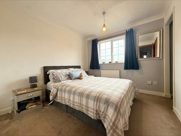 BEDROOM 1 9' 11" x 9' 3" (3.02m x 2.82m) UPVC double-glazed window to front; built-in wardrobe; built-in storage cupboards.