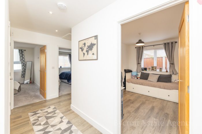 ENTRANCE HALL 16' 4 max" x 12' 3 max" (4.98m x 3.73m) loft access; double-glazed window to side; double-glazed composite door to side; built-in airing cupboard; built-in cupboard housing underfloor heating manifold.